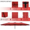 1.Double Sided Design for Larger Shaded Area: This patio umbrella is characterized by its 15ft double-sized canopy, which provides extra-large shading coverage for your whole family and friends. So you can put furniture set under the umbrella to relax and enjoy the breeze during leisure time.