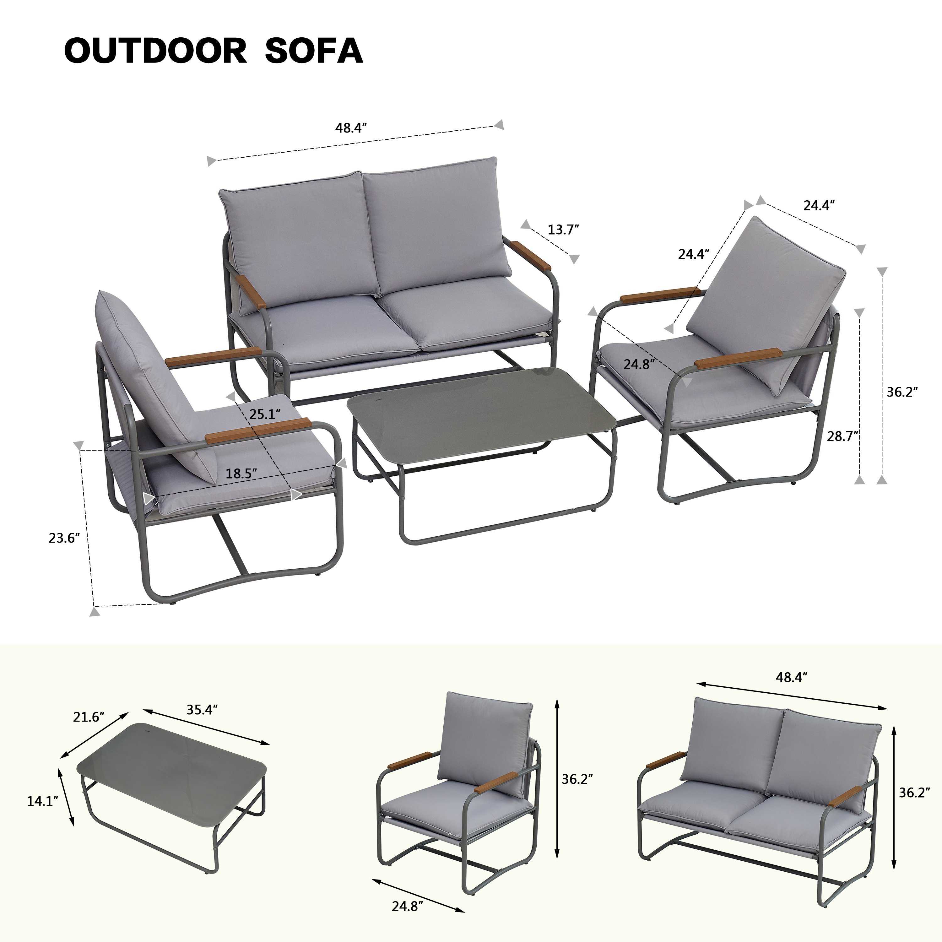 Easily combined into different configurations, this outside patio set adds a stunning element to your backyard, lawn, or recreational area. Its chic armrest and tabletop colors can blend in your different environment style, while its right size always provide the place for you to have a rest. The outdoor patio 4-piece set provides the right occasion for any conversation, encouraging you to chat more, gather more, and enjoy a good time.