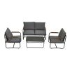 4-Piece Outdoor Patio Furniture Sets, Patio Conversation Set with Removable Seating Cushion, Courtyard Patio Set for Home, Yard, Poolside (Grey)