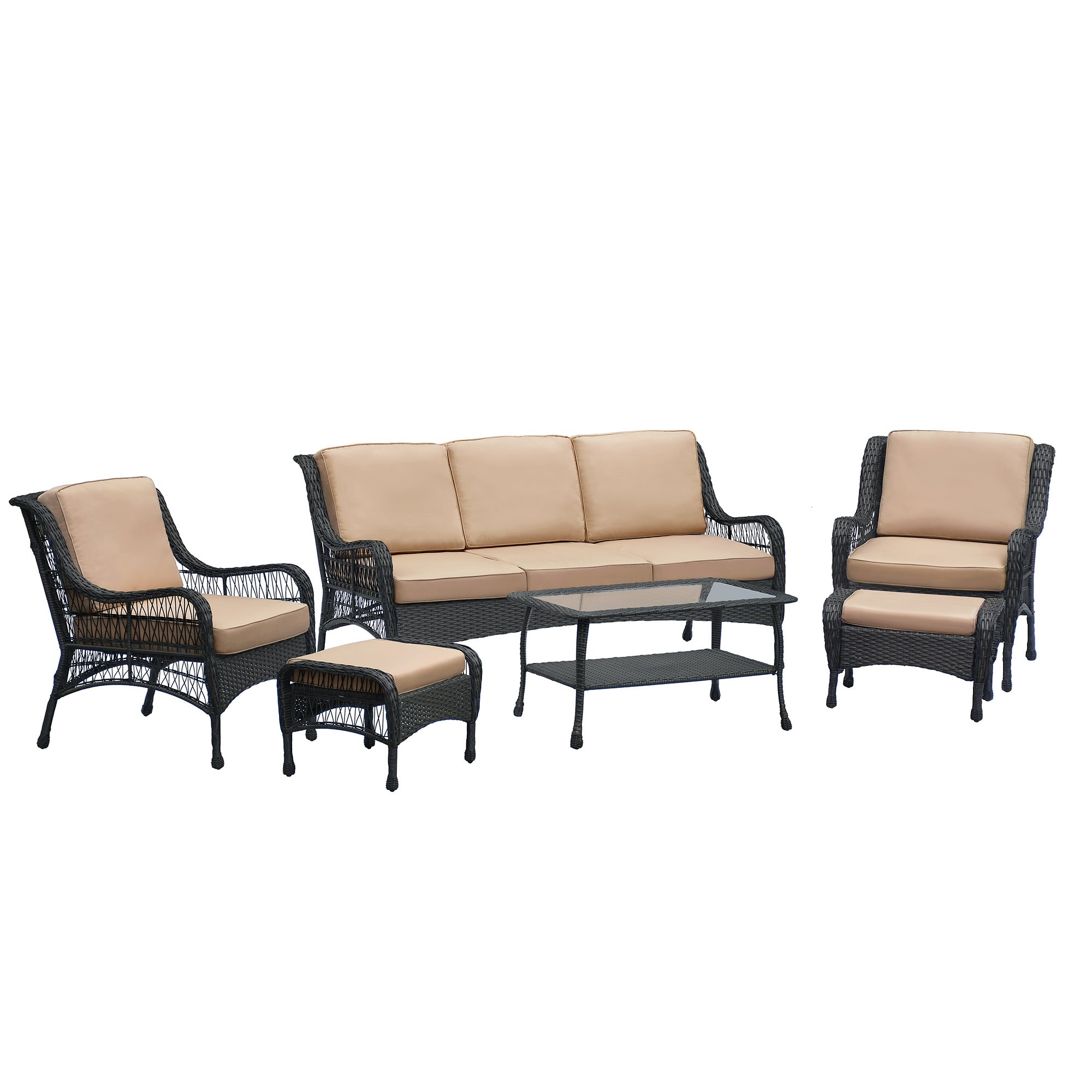 Home > 5-Person Rattan Patio Conversation Sets for Garden Backyard, Navy Blue