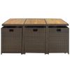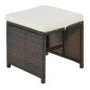 Zippered CushionΠllowWith these 2-inch thickness water-resistant cushions and pillows, extra comfort will be offered. Due to zippered cover, all of the covers can be washed by machine which hand-washing is still be strongly recommended for longevity. To avoiding the cushions falling down from stools, the whole of them cWeight&Dimensions&SpecificationsOverall Product DimensionTable: 65.7x43x29inch(LXWXH); Chair: 20.7x18.5x33.9inch(LXWXH); Seat to ground: 18.5inch(with cushion); Stool: 15.7x15.7x15.4inch(LXWXH, with cushion); Back Pillow: 18.5x16.5x2inch(LXWXT); Chair Cushion: 16.5x16.5x2inch(LxWXT); Stool Cushion:15.7x15.7x2inch(LXWXT)Overall WeightTable:61.73lbs Chair:17.64lbs Stool:6.61lbsWeight CapacityTable:176lbs Chair: 350 lbs Stool: 350 lbsMaterialPE Wicker + Steel frame + Polyester+Sponge((1.7lbs/cu.ft)+Acacia woodPieces Included6 armchairs; 1 table; 4 stoolsColorBrown wicker, beige cushionAssembly RequiredYesAdditional Tools RequiredAll Tools IncludedCountry of OriginVietnamProduct WarrantyPlease Read Return Policy