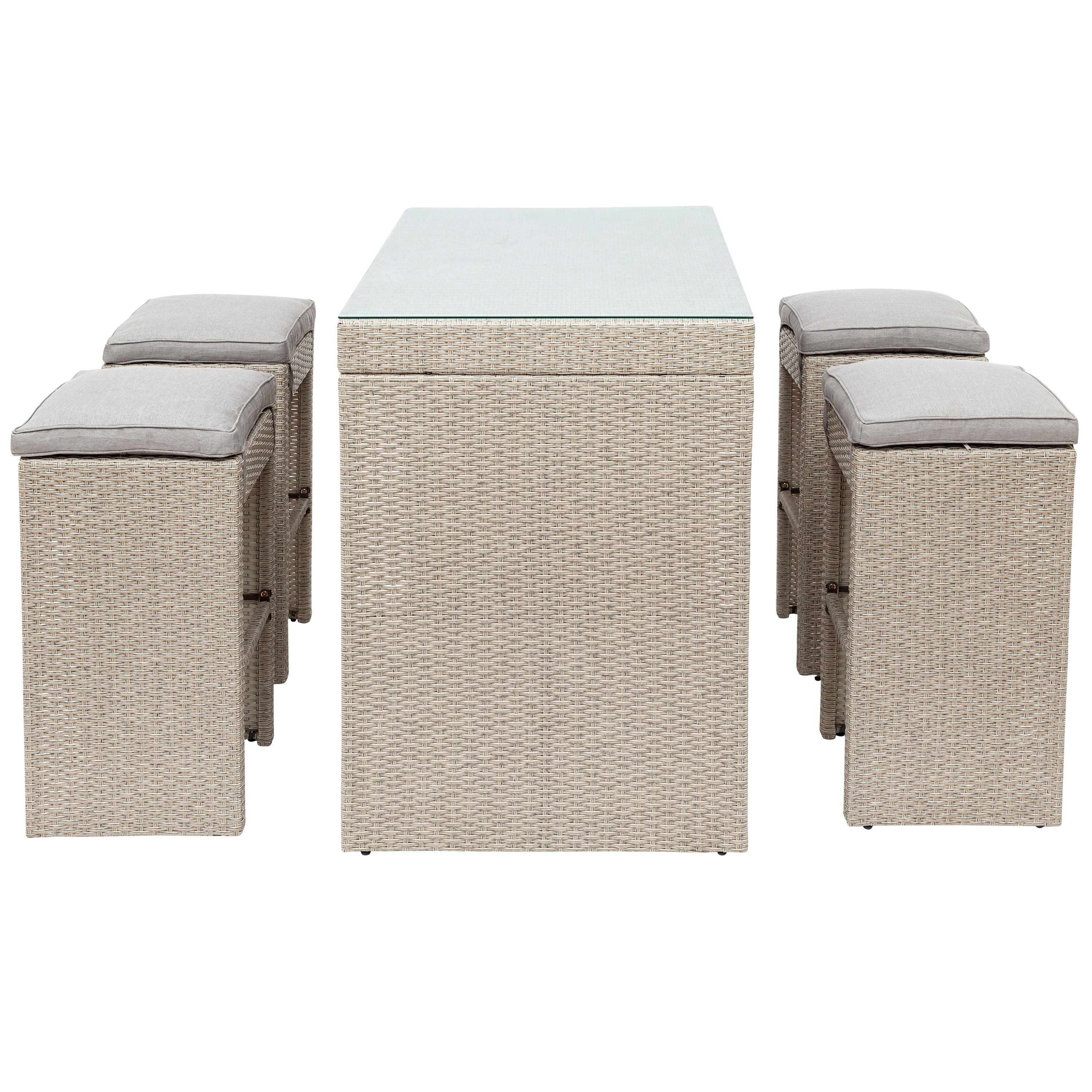 Topmax 5-piece Rattan Outdoor Patio Furniture Set Bar Dining Table Set with 4 Stools, Brown Cushion+Brown Wicker