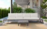 [Sectional Wood Sofa Set] This sectional patio sofa set includes two spacious loveseats and one coffee table, perfect for seating four people comfortably. Equipped with four back pillows and two cushions, the sofa will provide ample support while you relax outdoors. Versatile design for this furniture set allows you to arrange it in a variety of configurations to fit your outdoor space.
