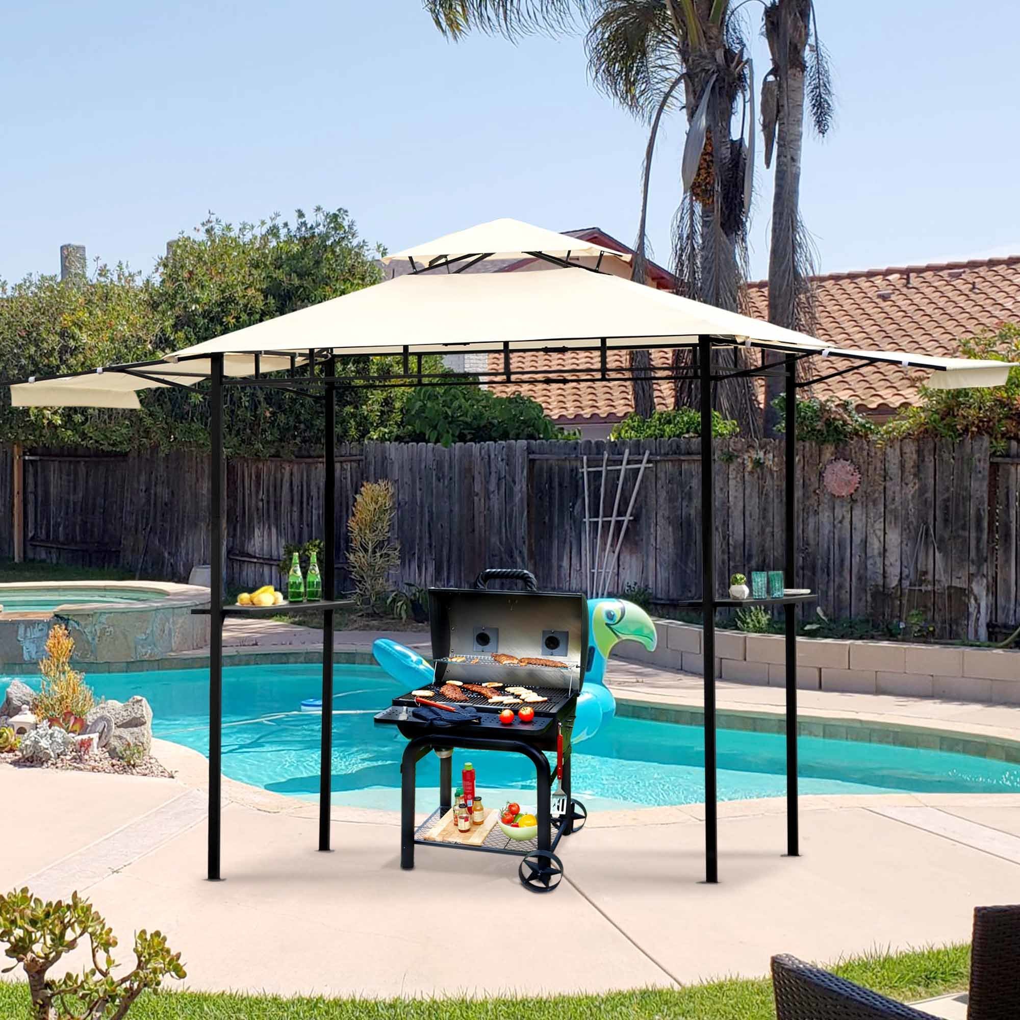 Umbrellas & Shades 12Ft.Lx4.3Ft.W Iron Double Tiered Backyard Patio BBQ Grill Gazebo with Bar Counters, Steel Double Tiered Gazebo